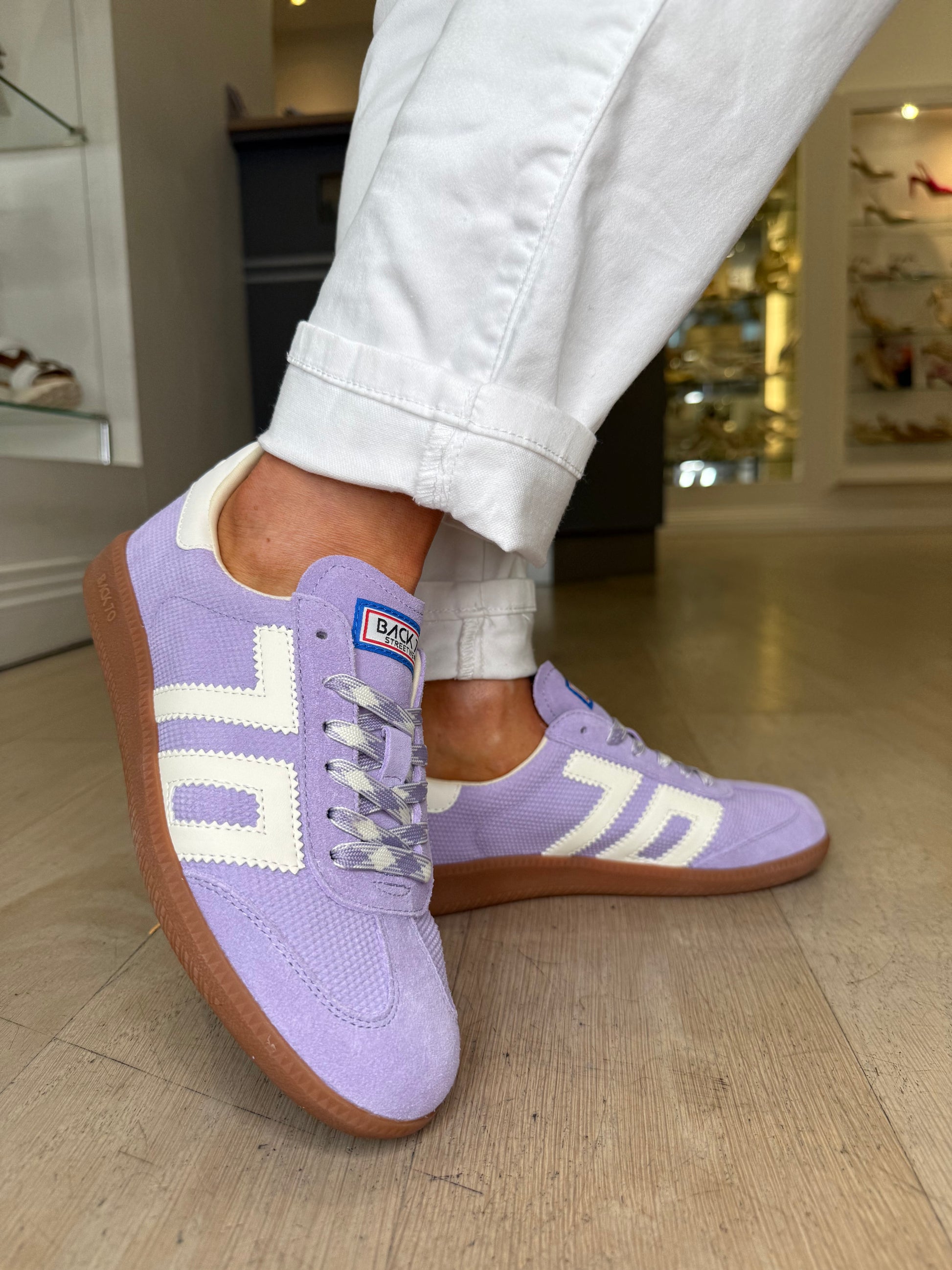 The delicate lilac shade paired with bright white accents is perfect for Spring/Summer styling. Team them with white jeans or light-wash denim for a fresh, clean look, or style them with a floaty dress or tailored cropped trousers for an effortlessly put-together outfit. This Back 70 trainer blends comfort, versatility and soft seasonal colour in one easy-to-style silhouette.