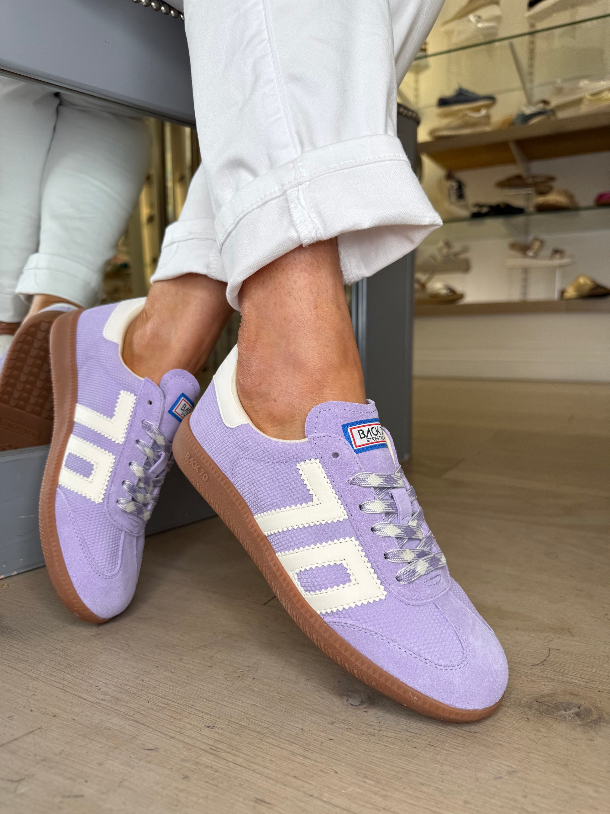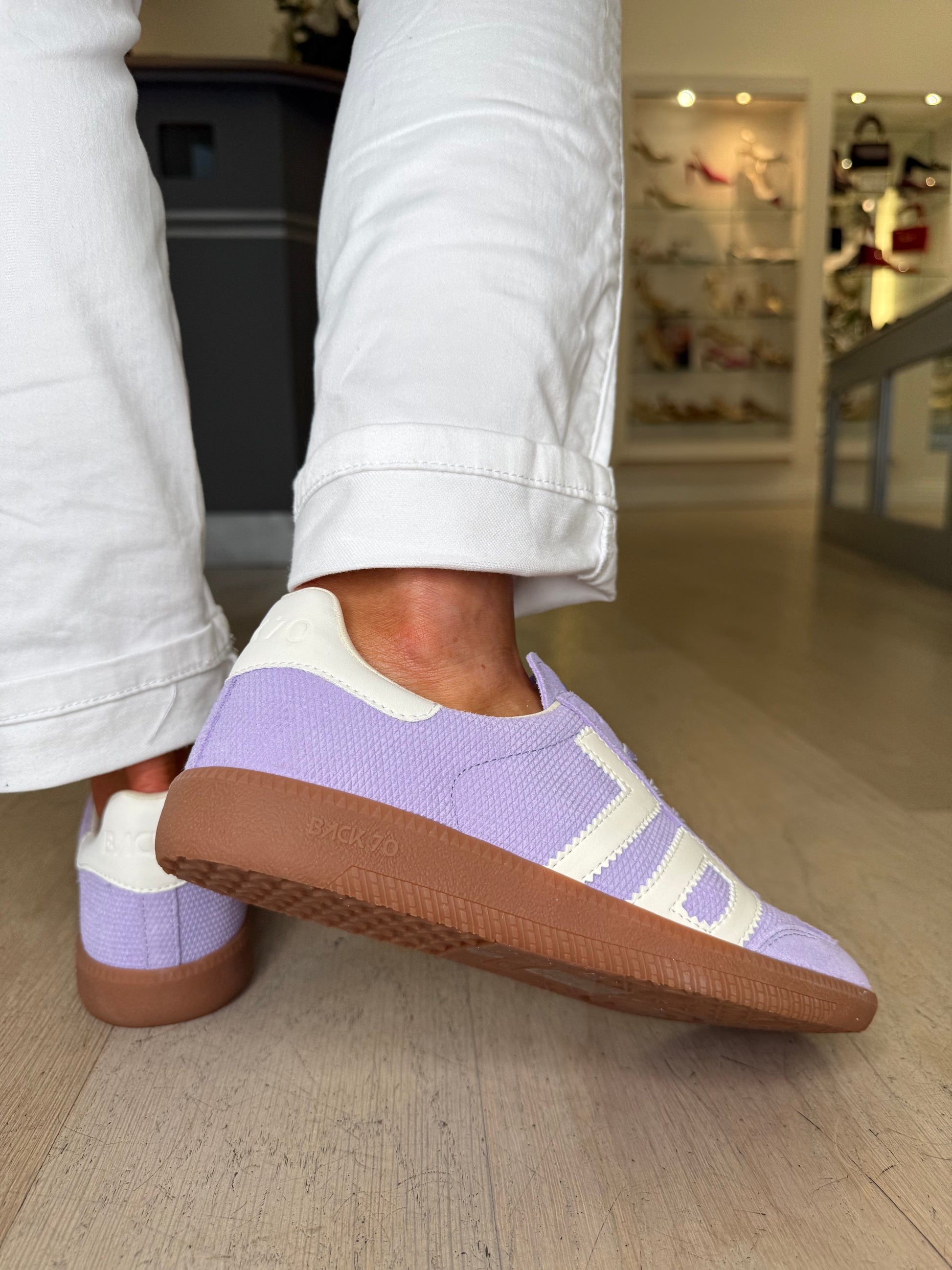 Add a soft pop of colour to your seasonal wardrobe with this Back 70 trainer in a beautiful lilac and white combination. The gentle pastel upper is perfectly balanced by crisp white detailing and a classic gum sole, giving the shoe a subtle retro aesthetic with a fresh, modern twist. The textured finish and clean lines keep the look effortlessly refined, making this a standout style that still feels easy to wear every day.