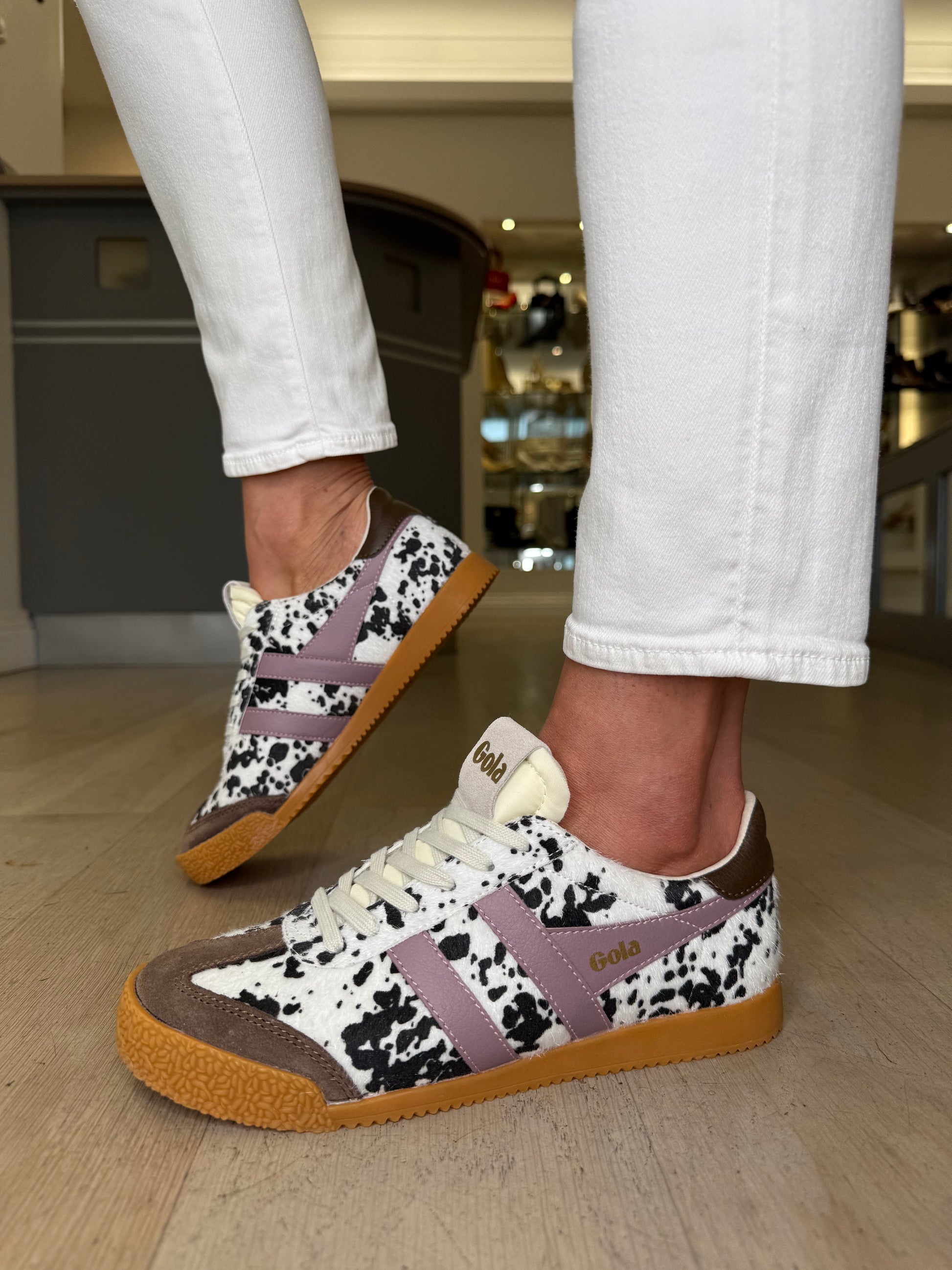 Gola - Elan Dalmation Print Trainer With Brown Suede & Dark Lavender Trim