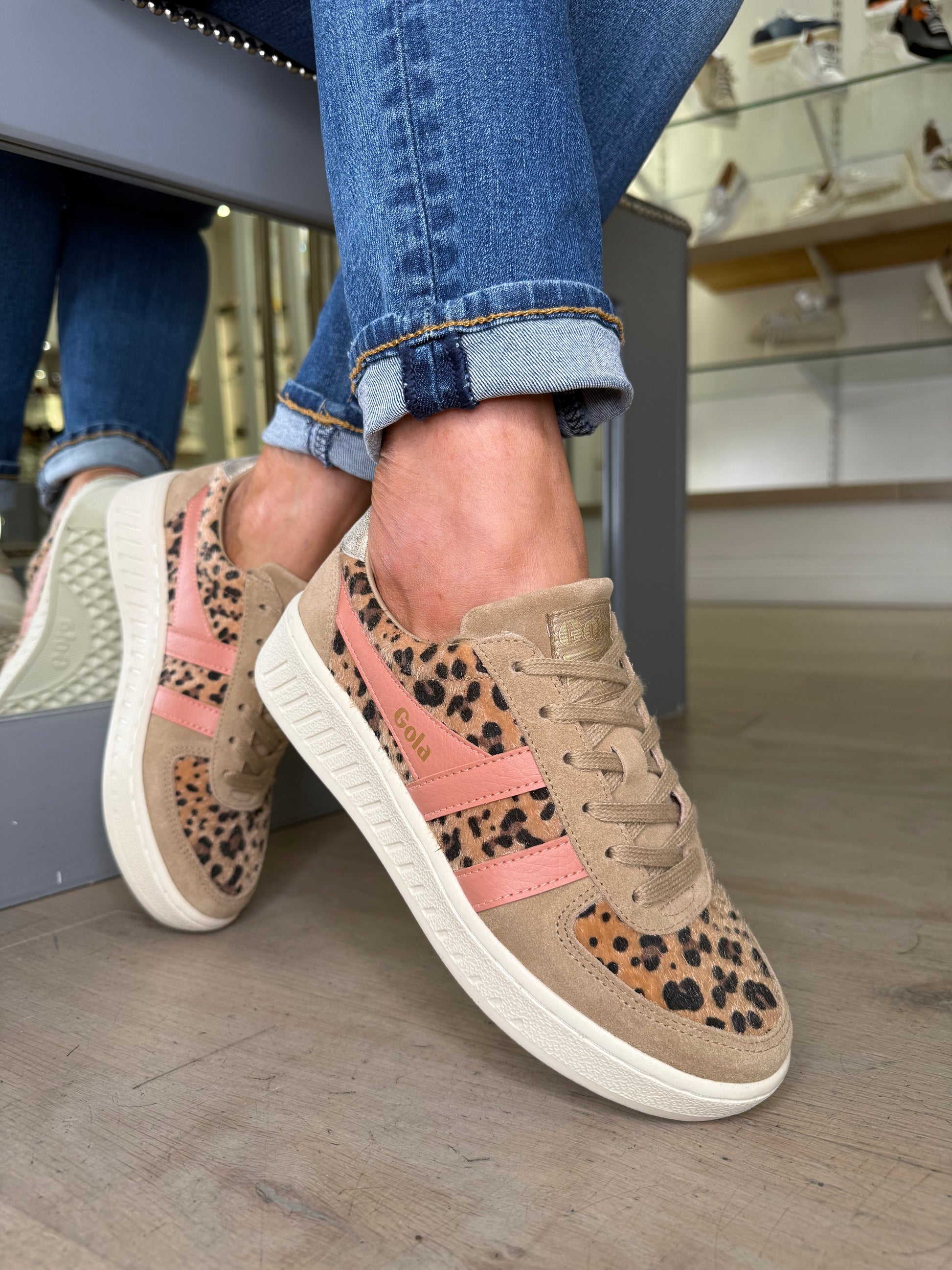 Gola - Grandslam Caramel Suede Trainer With Leopard Print & Coral Trim