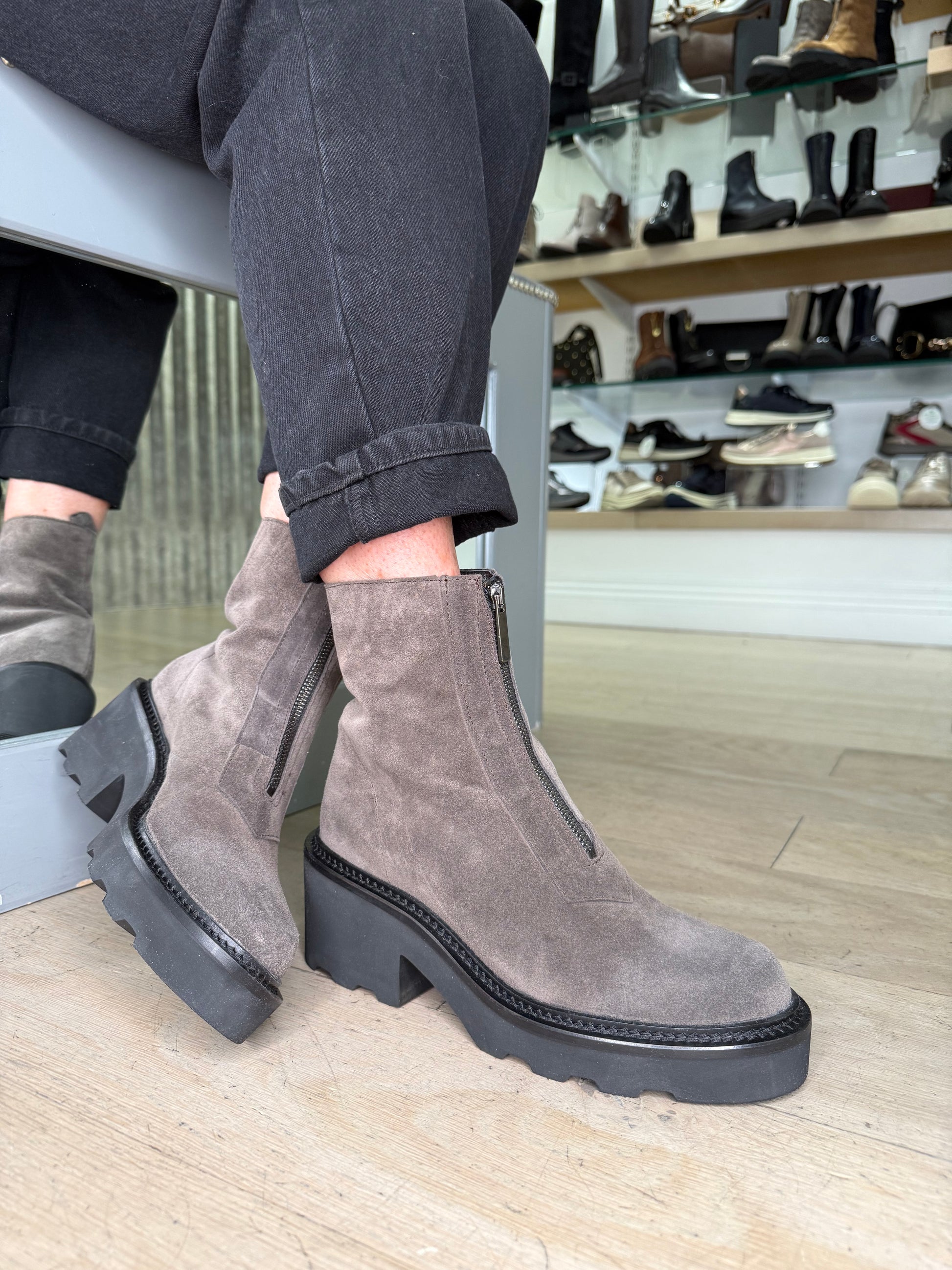 Elevate your everyday style with the Alpe Mink Grey Suede Platform Ankle Boot. Designed in a beautifully soft mink-grey suede, this versatile shade pairs effortlessly with blacks, greys, denims, and muted neutrals—making it an easy, wearable staple for any wardrobe. The sleek front-zip detail and chunky, lightweight platform sole add a modern edge while giving you comfortable height without the heaviness.
