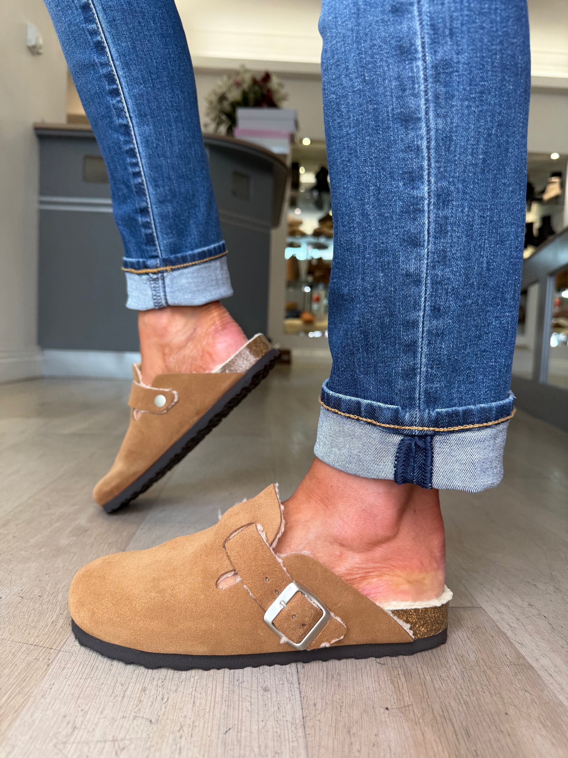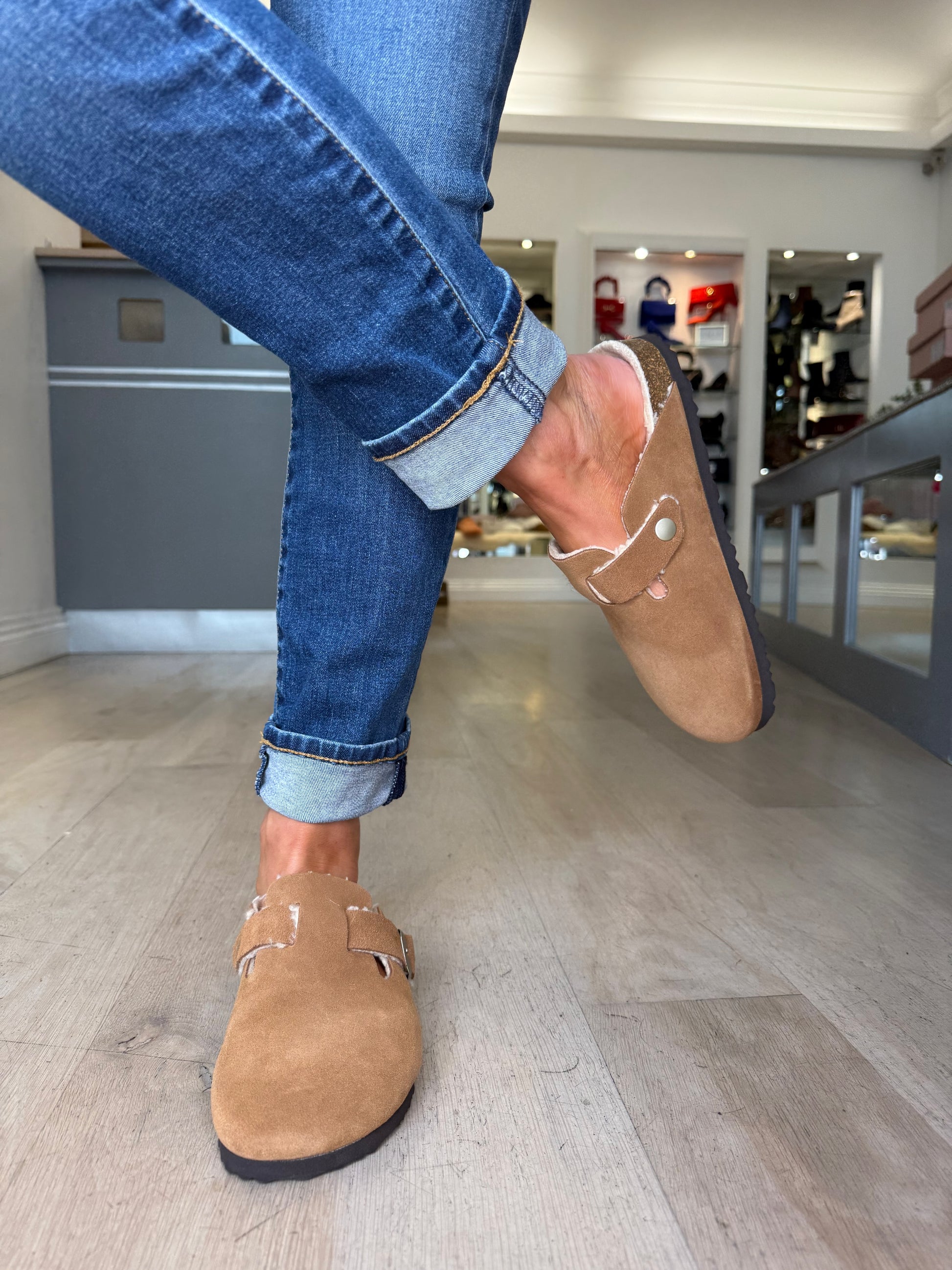 Everyday comfort and effortless style come together in the Another Step Suede Buckle Clogs. Made for indoor/outdoor wear, you won't want to take these off. Designed with a soft suede upper in a warm camel tone, these slip-on clogs combine relaxed sophistication with practical comfort. The adjustable metal buckle ensures a secure, custom fit, while the cushioned cork footbed provides all-day support and breathability.