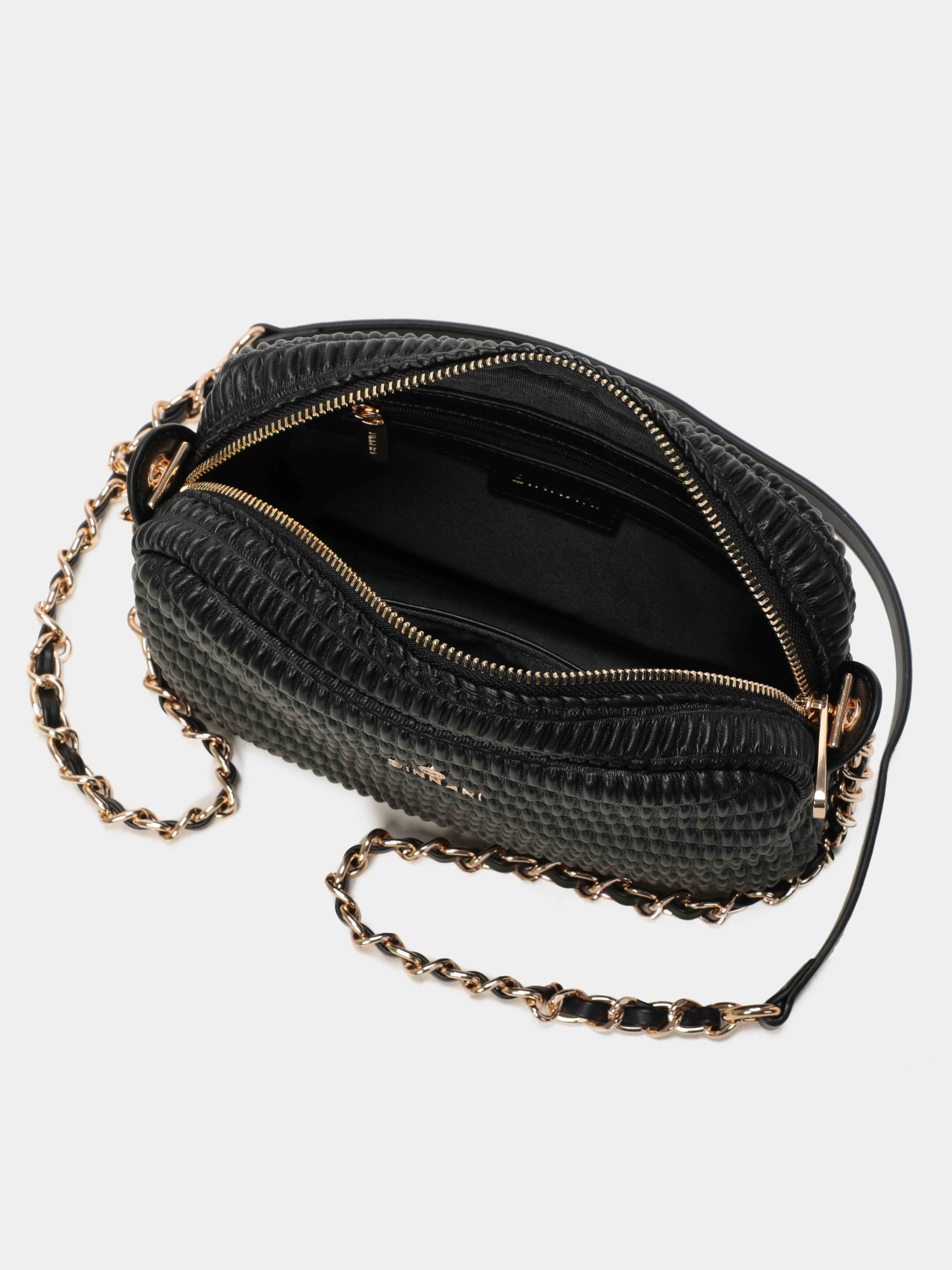 Absolutely adore this bag from Binnari. Design made of high quality quilted pu, with logo on the front. The inside of the bag is accessed by means of a zip. In it we find several pockets, one of them with zip for greater security. The handle is adjustable and is made of leatherette, except for a piece on the left and right side which is made of chain. Metallic details in light gold colour
