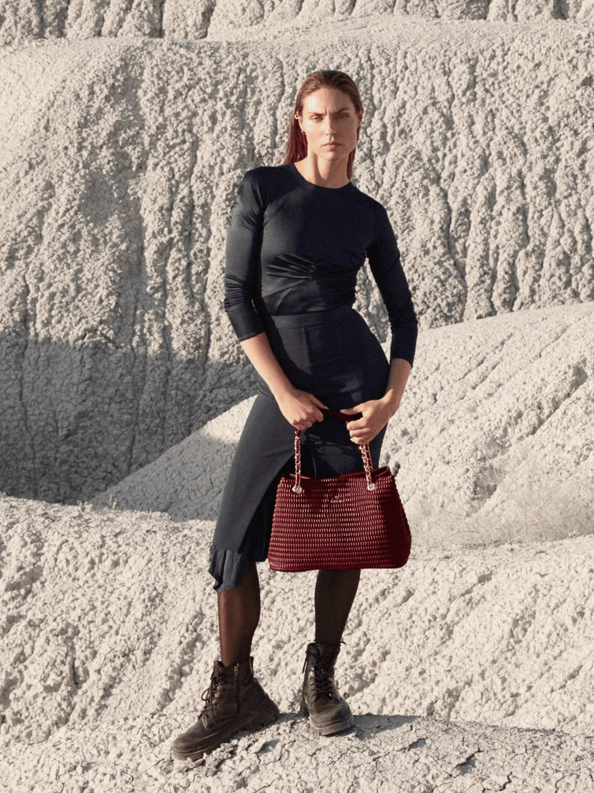 Elevate your everyday style with the Binnari Patti Two-Handle Bag in Bordeaux, a perfect fusion of elegance and practicality. Crafted with Binnari’s signature attention to detail, this versatile handbag features a rich woven texture that adds depth and sophistication to any outfit.