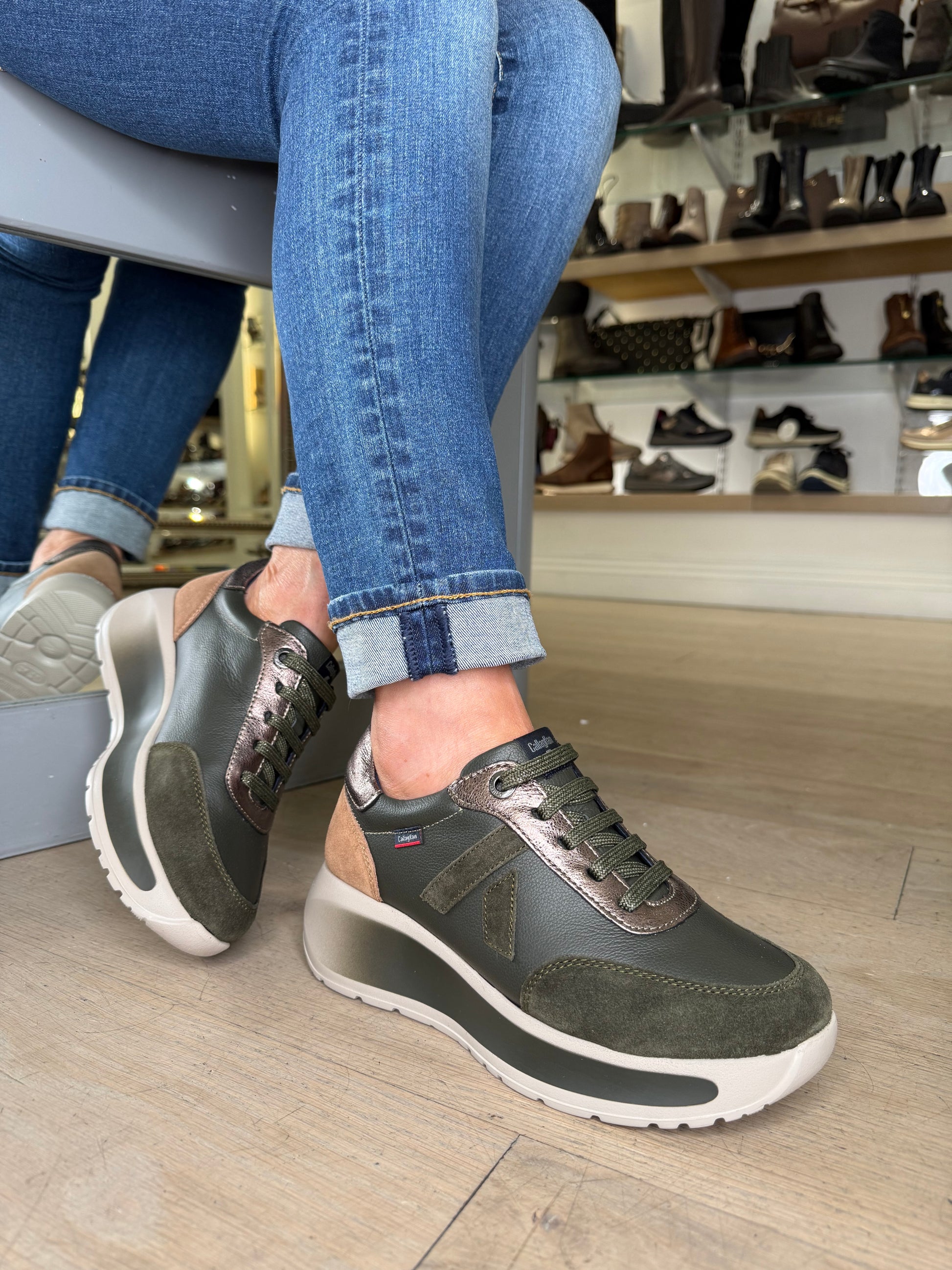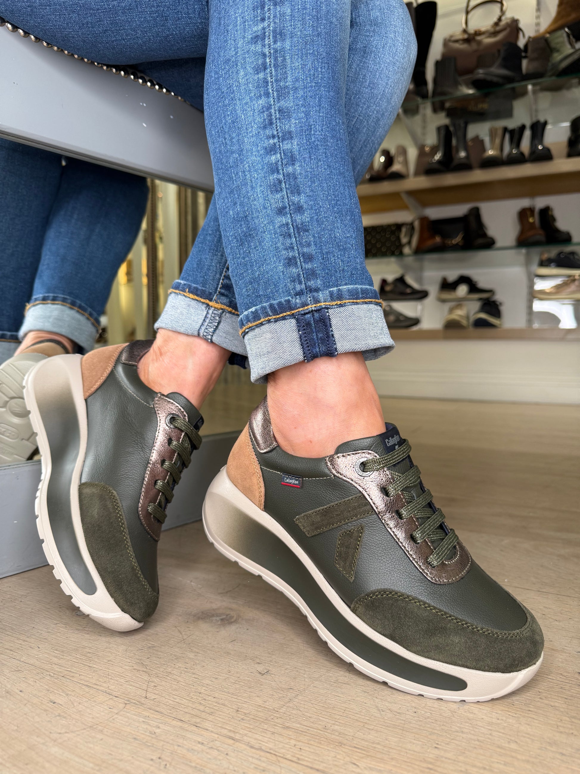 Callaghan - Dark Khaki Mix Lace Up Chunky Sole Trainer