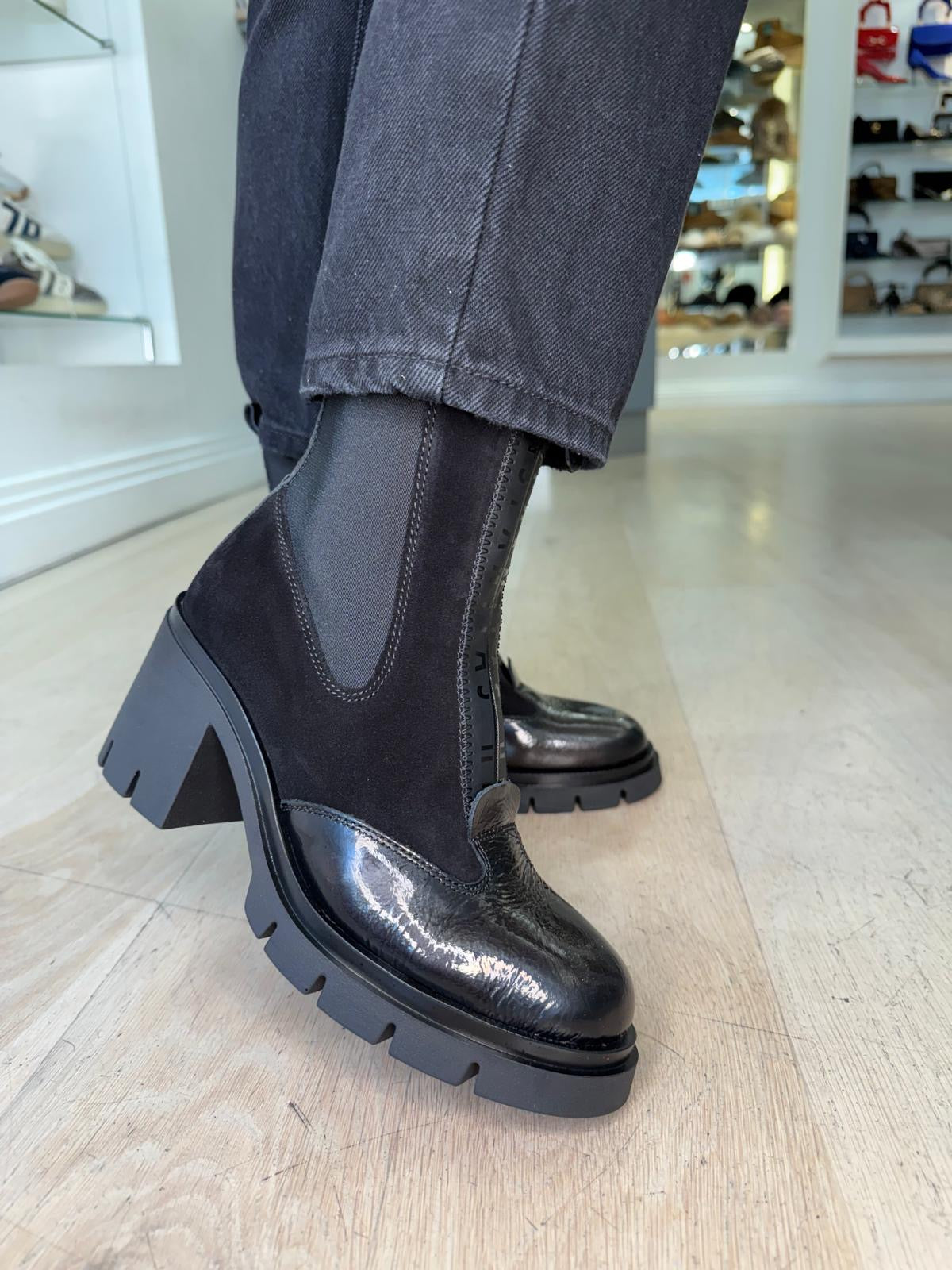 Hispanitas - Black Suede & Leather Block Heel Boot With Platform Sole
