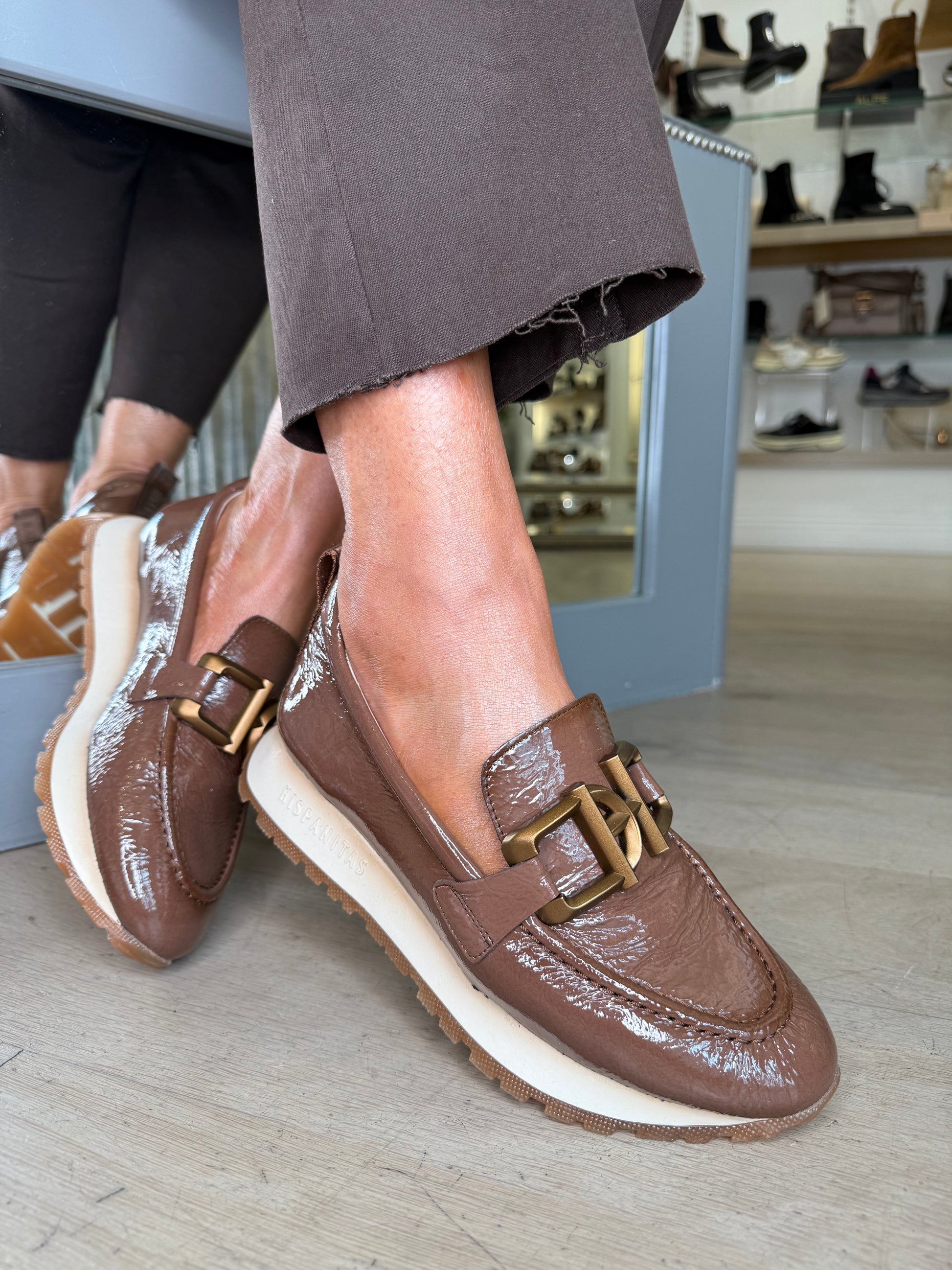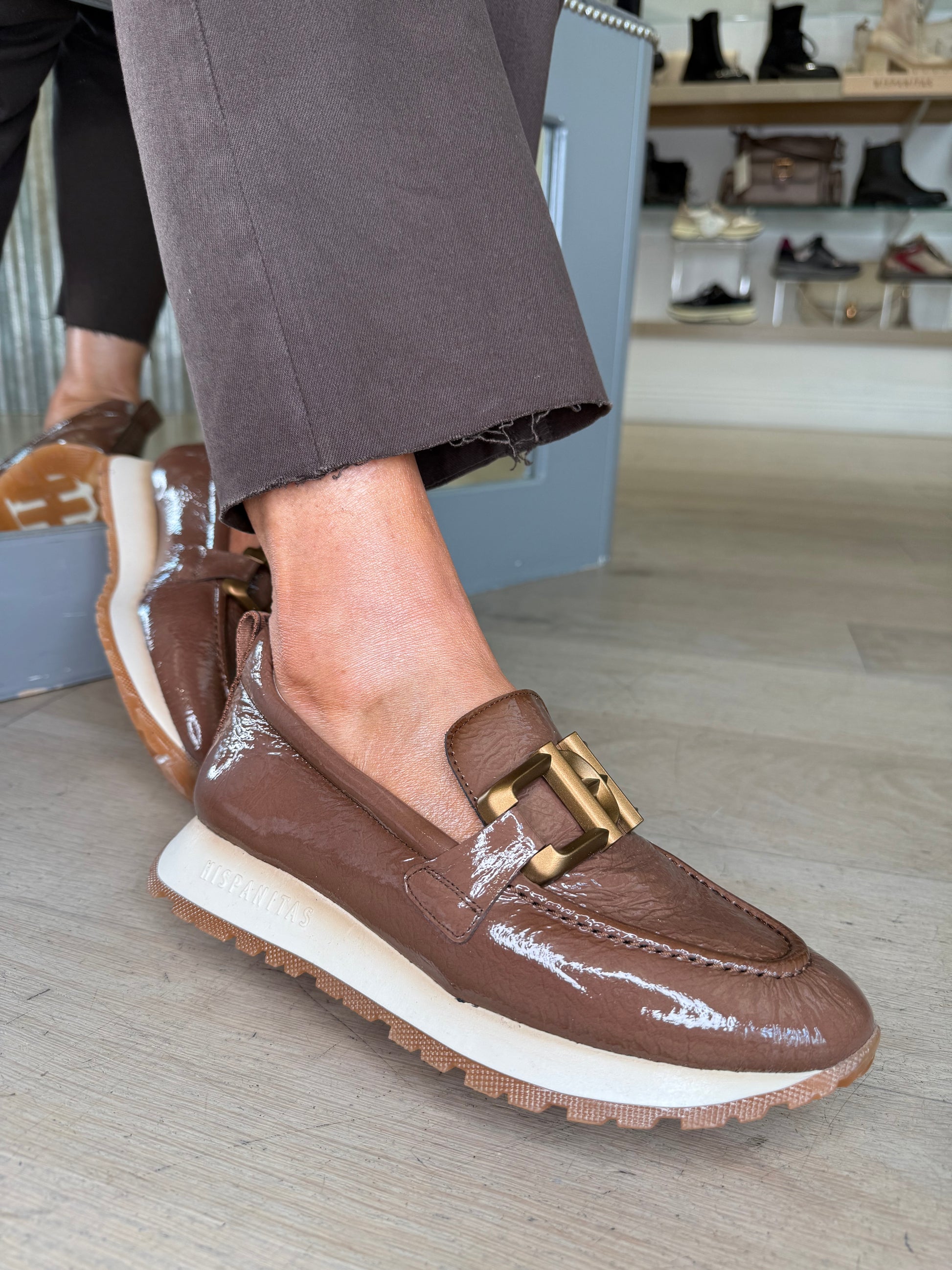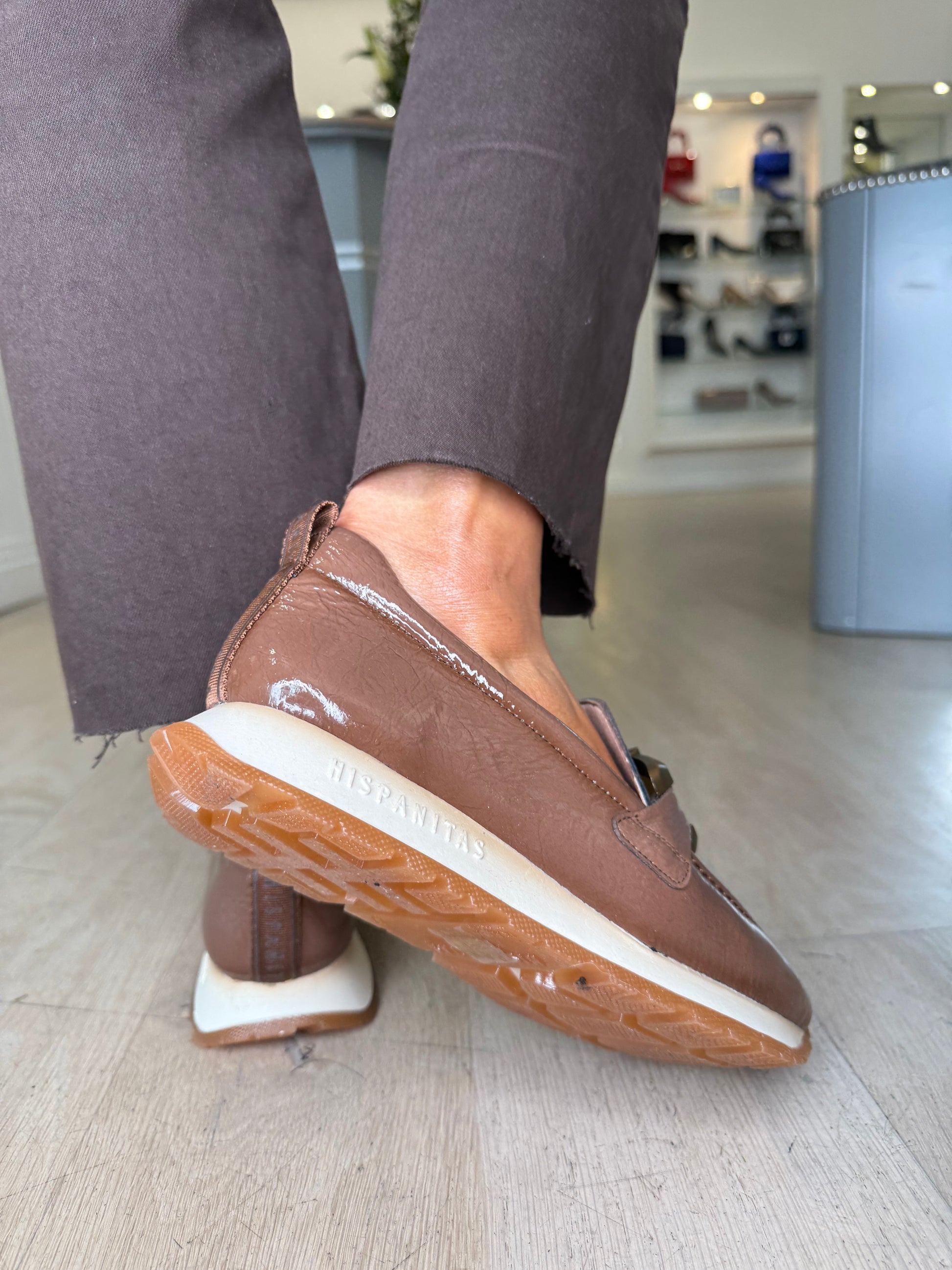 Hispanitas - Flexy Patent Mocha Slip On Shoe With Sporty Sole