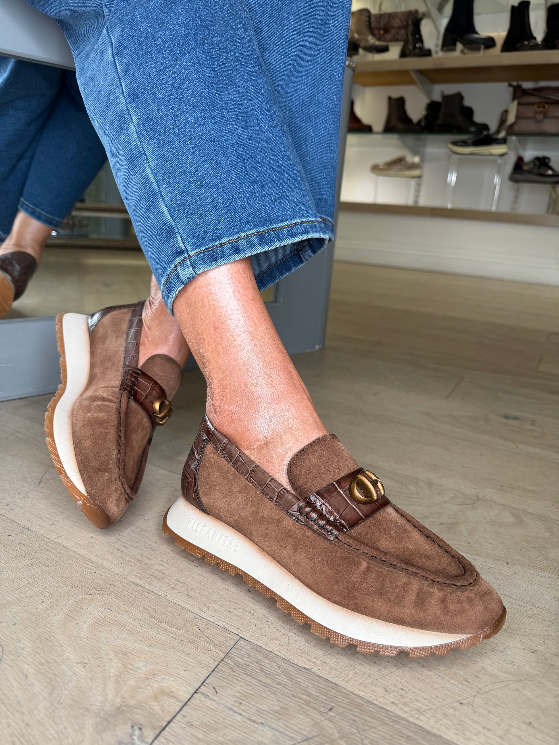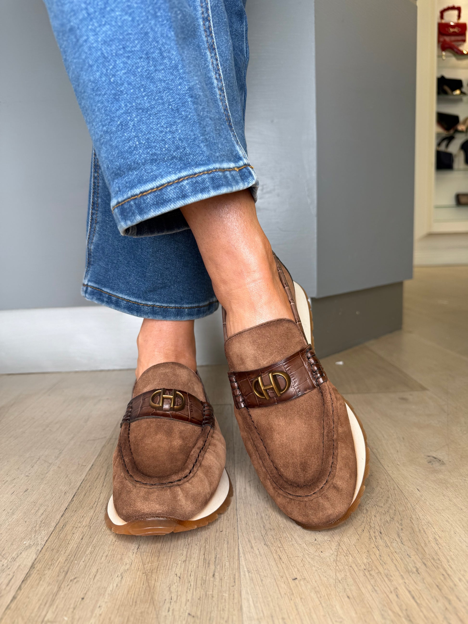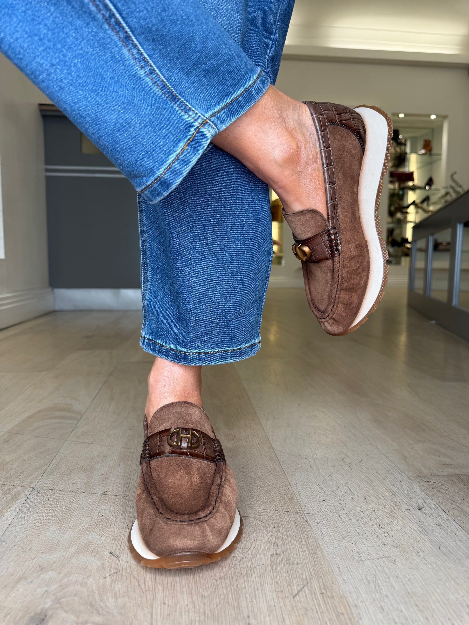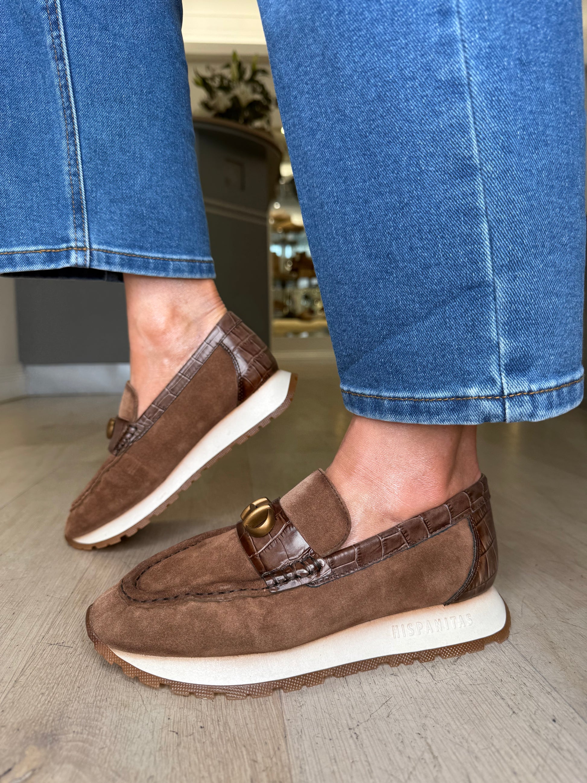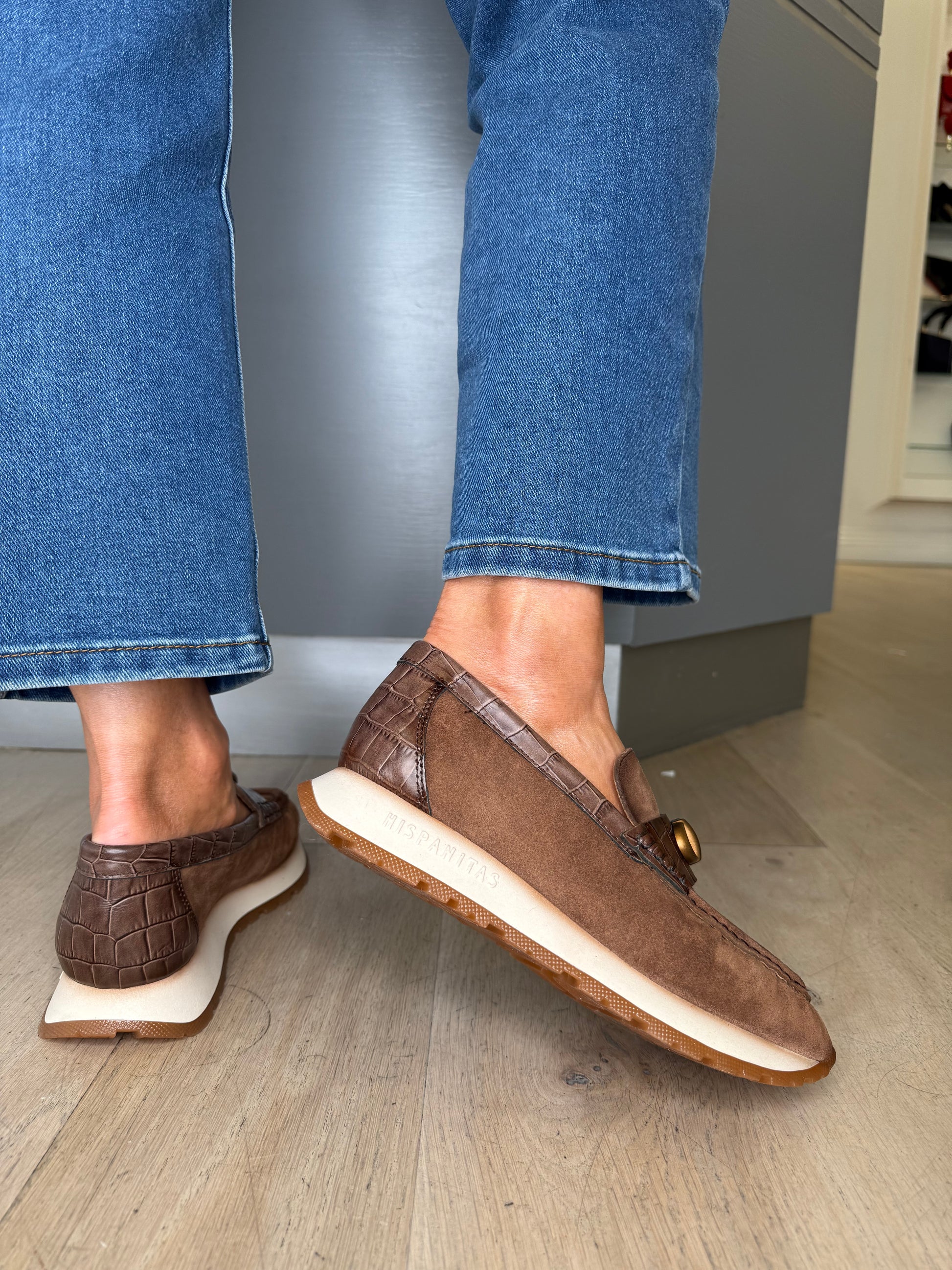 Hispanitas - Soft Brown Suede Moccasin Shoe With Dark Brown Croc Trim