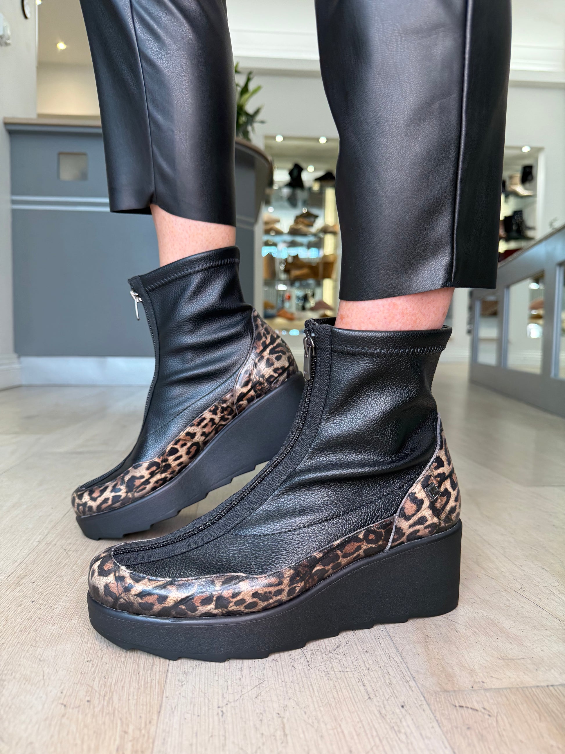 Jose Saenz -Black Leopard Print Mix Wedge Boot