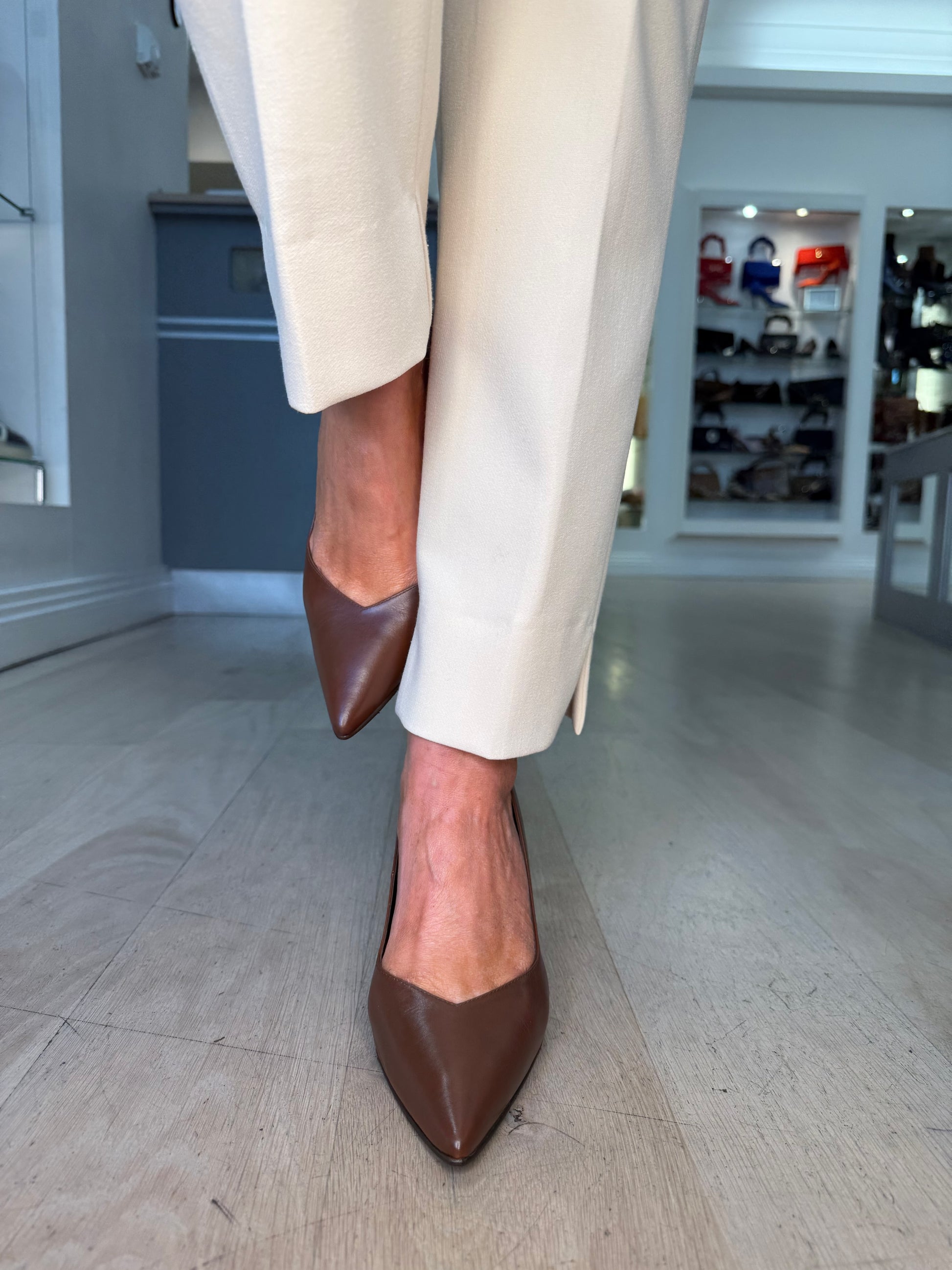 Lodi - Rich Brown Leather Pointy Toe Court Shoes