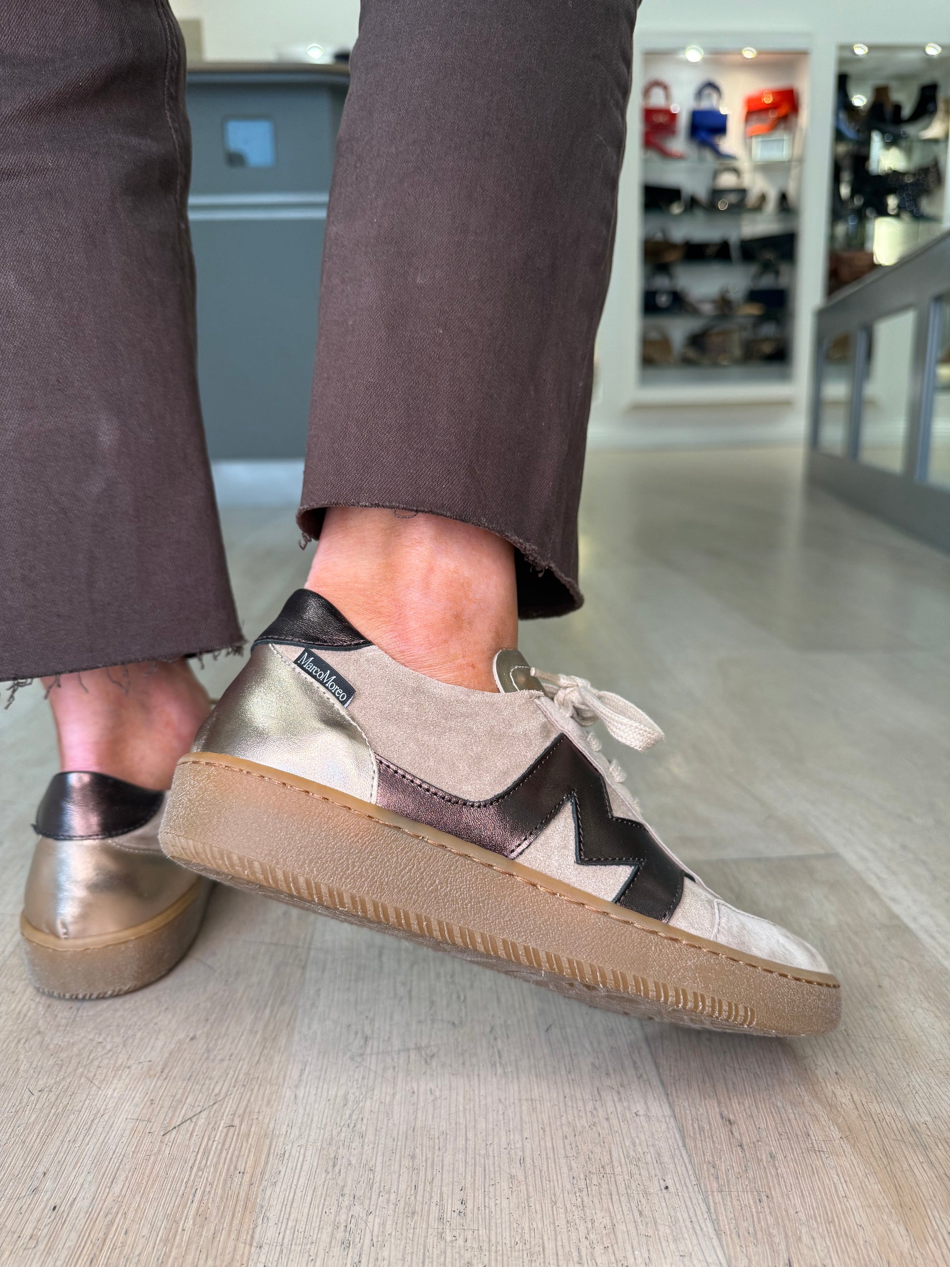 Marco Moreo -Beige Suede Trainer With Bronze Trim