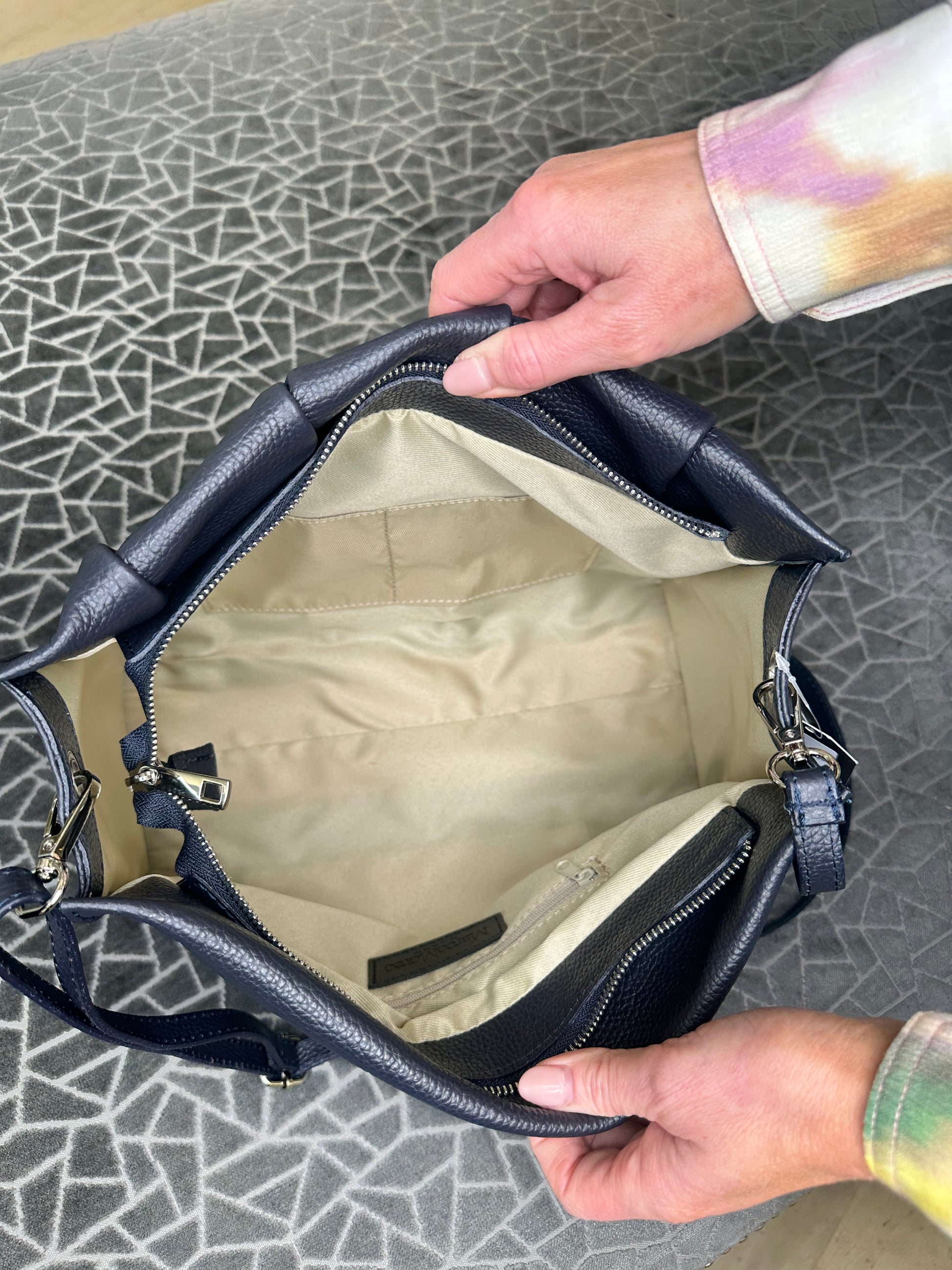 A great bag for everyday wear. A side zipped pocket on the inside and a compartment for your phone and keys!