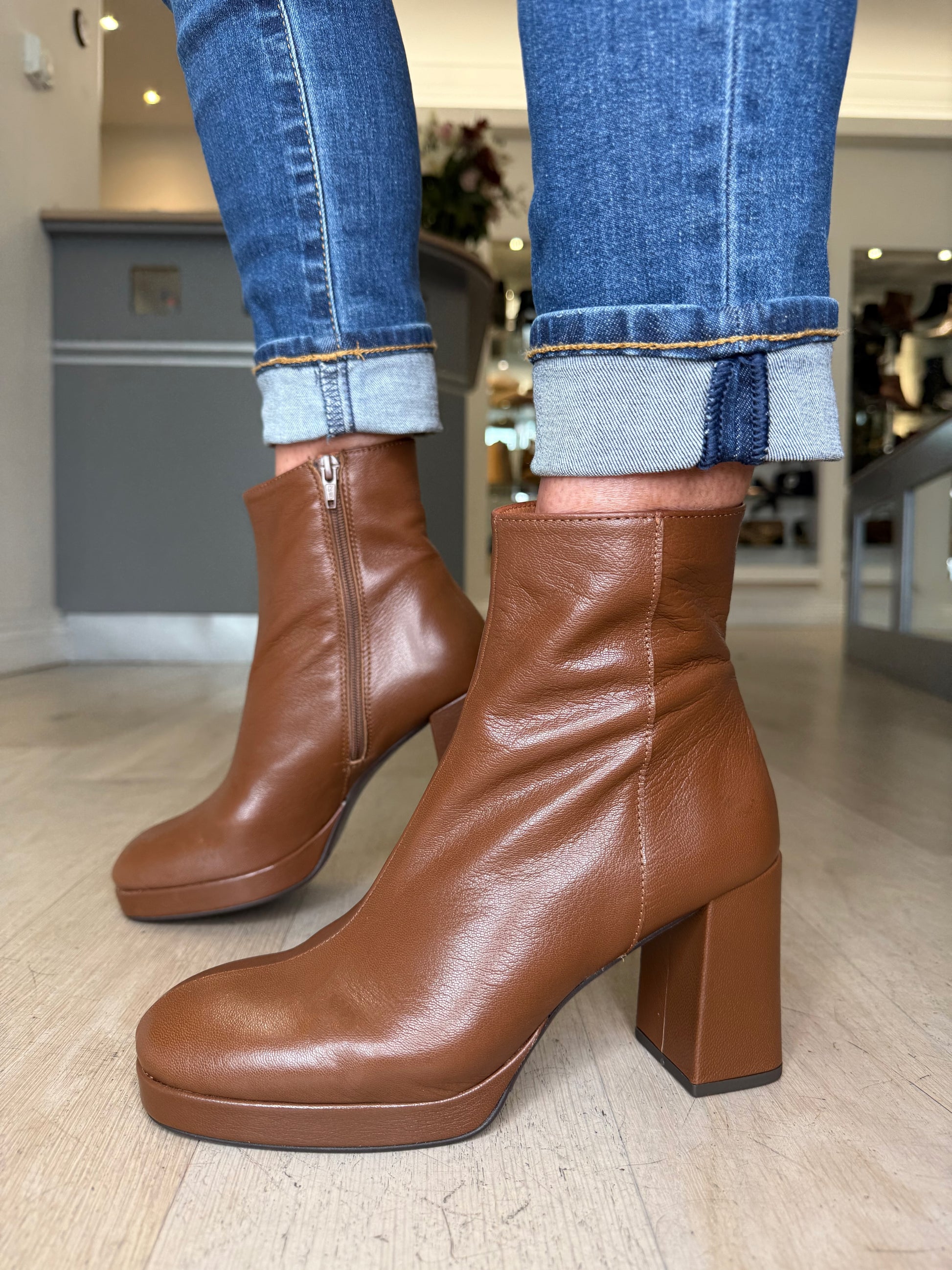 Marian - Rich Tan Leather Rounded Toe Block Heel Boot